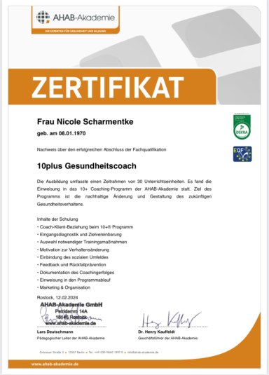 Meine Aus- und Weiterbildungen sind mehr als nur Zertifikate – sie sind der Grundstein meiner Leidenschaft, Menschen auf ihrem Weg zu mehr Gesundheit und innerer Balance zu begleiten.