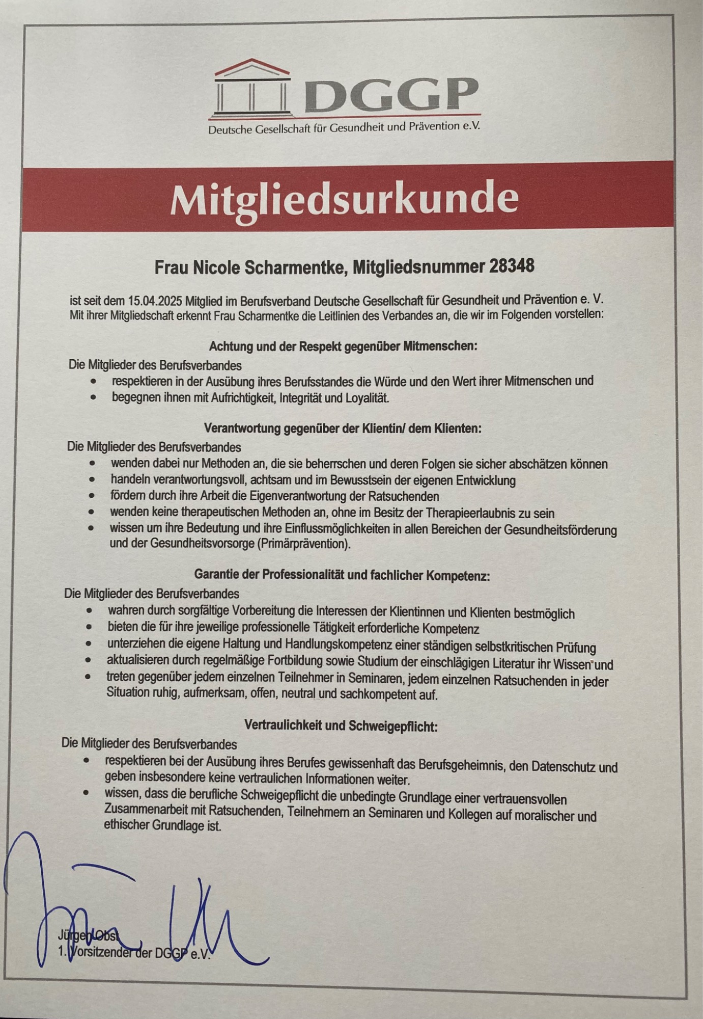 Ich bin Mitglied der Deutsche Gesellschaft für Gesundheitsprävention (DGGP) und orientiere mich an deren Qualitätsstandards für eine professionelle und vertrauensvolle Begleitung.
